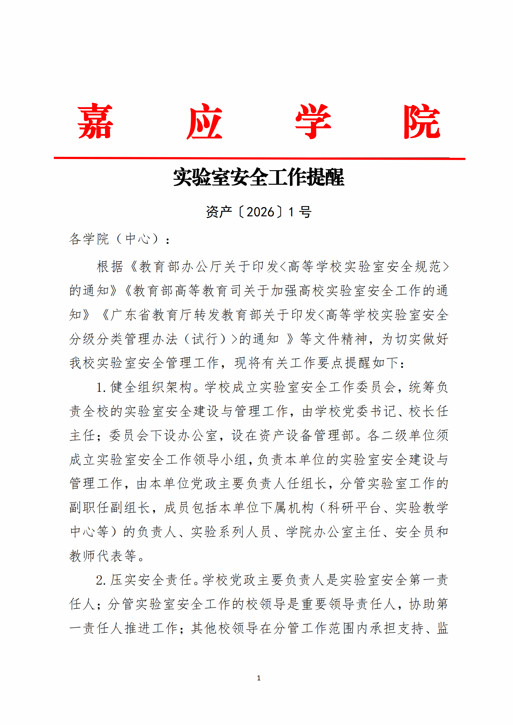 实验室安全工作提醒